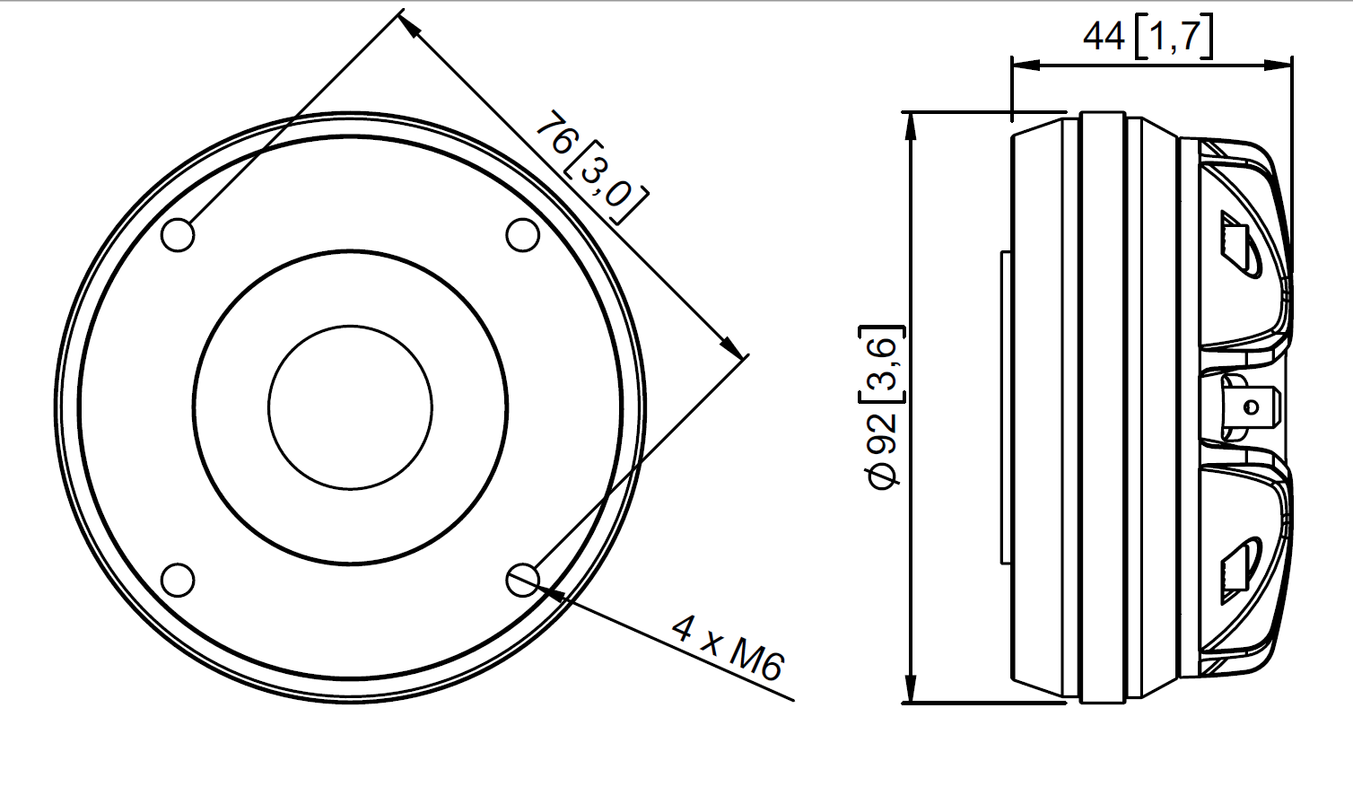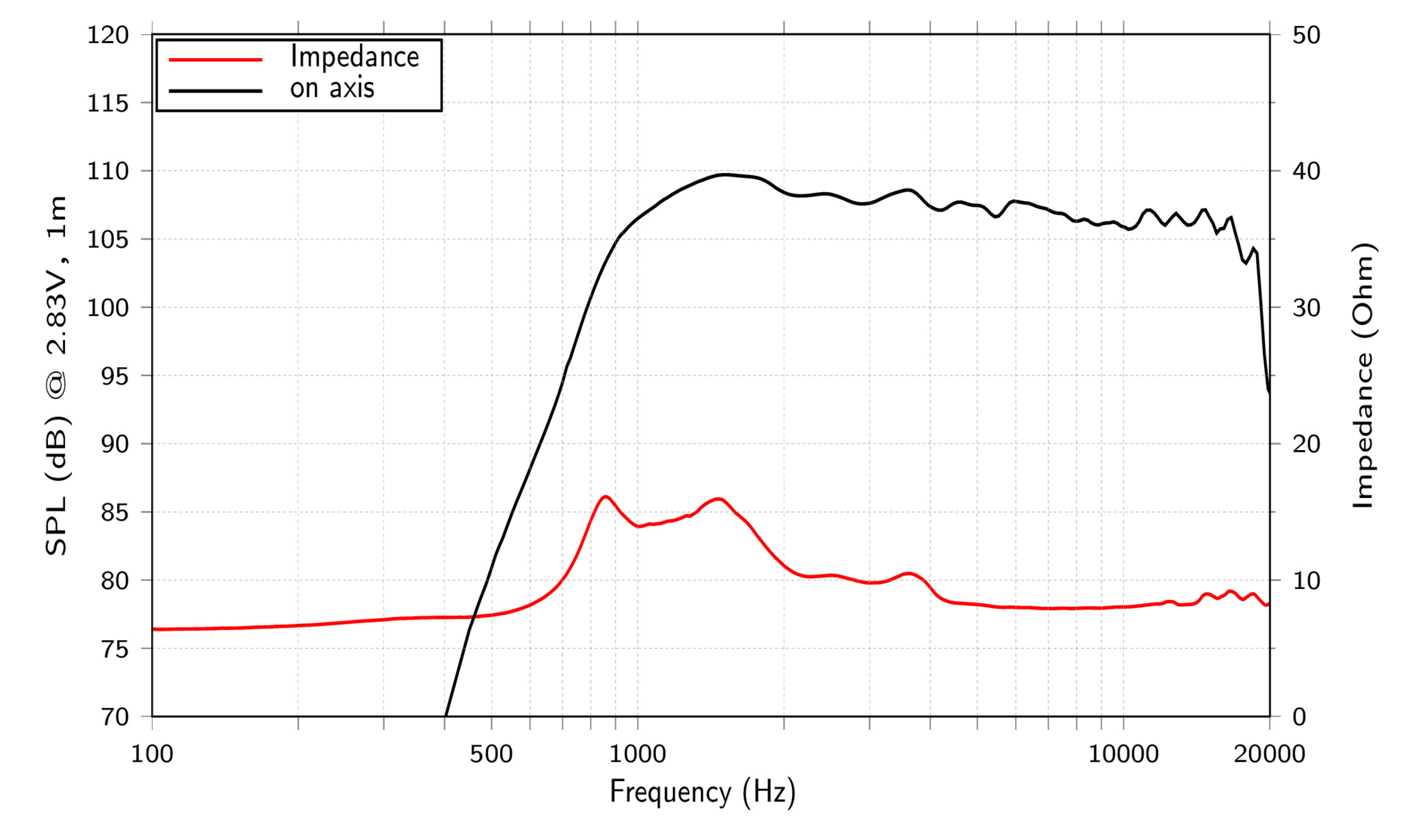 3 - Measured on axis at 2.83V, 1m, driver loadedwith 60x40 horn, SPL averaged in the frequency range 1000 ÷ 20000 Hz.