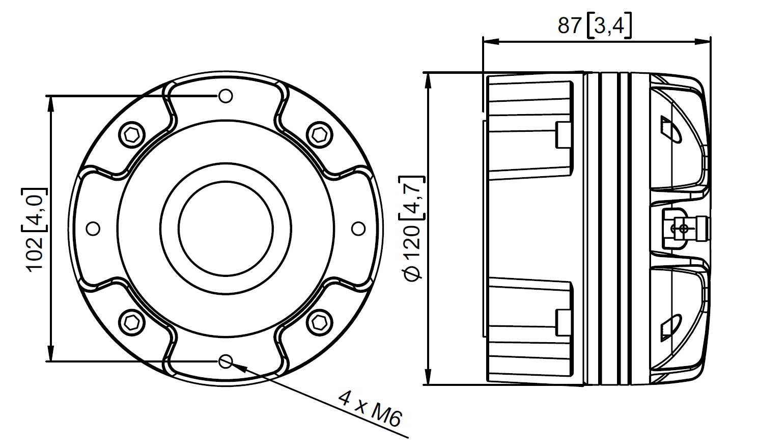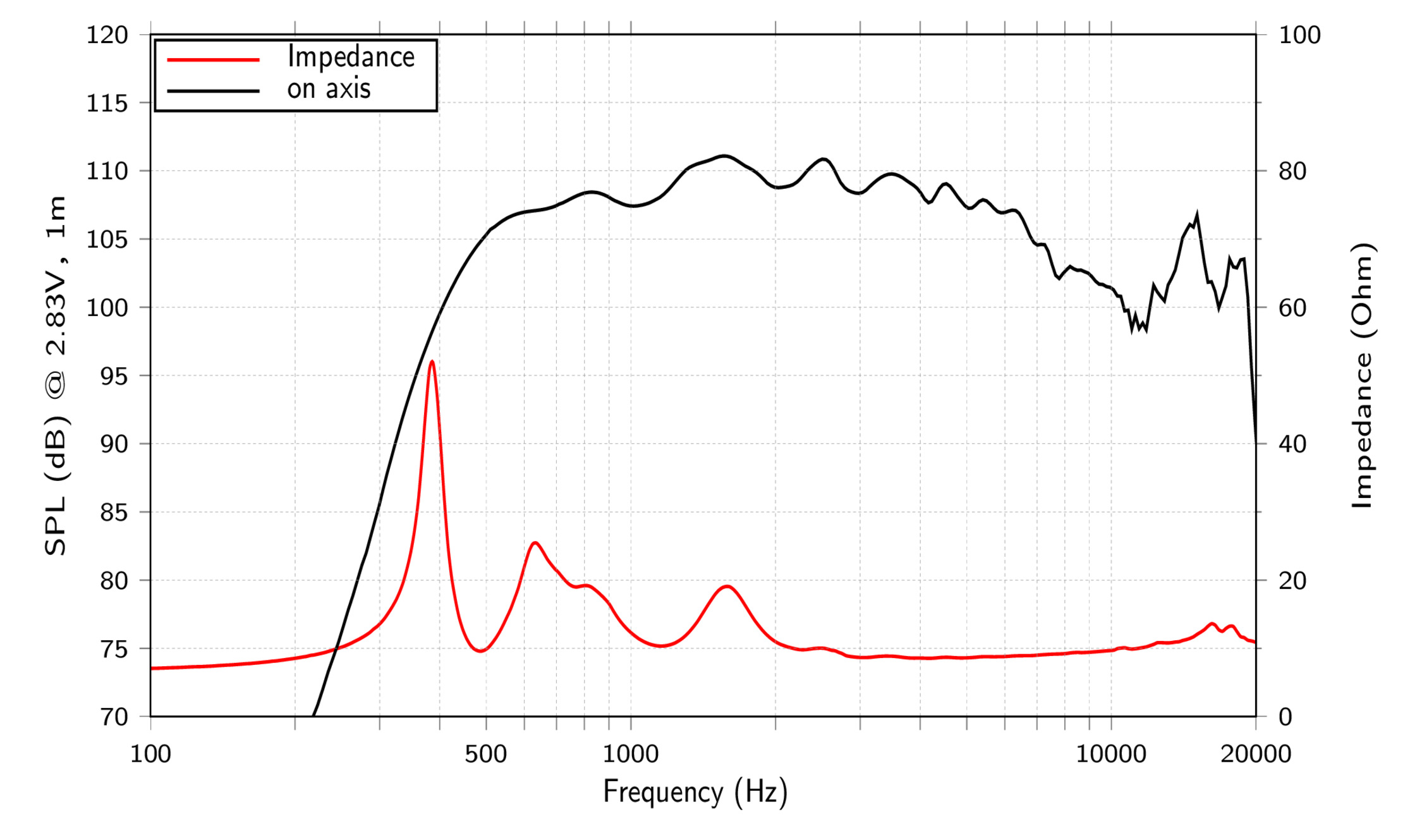 3 - Measured on axis at 2.83V, 1m, driver loadedwith 60x40 horn, SPL averaged in the frequency range 800 ÷ 20000 Hz.
